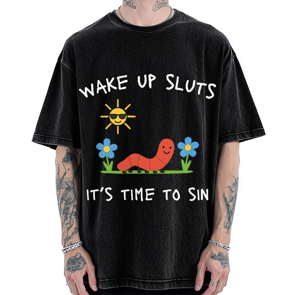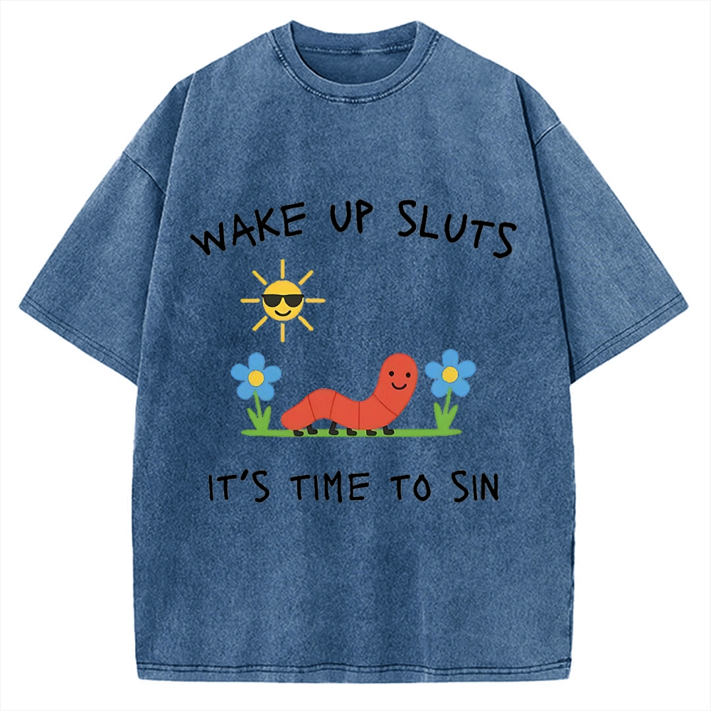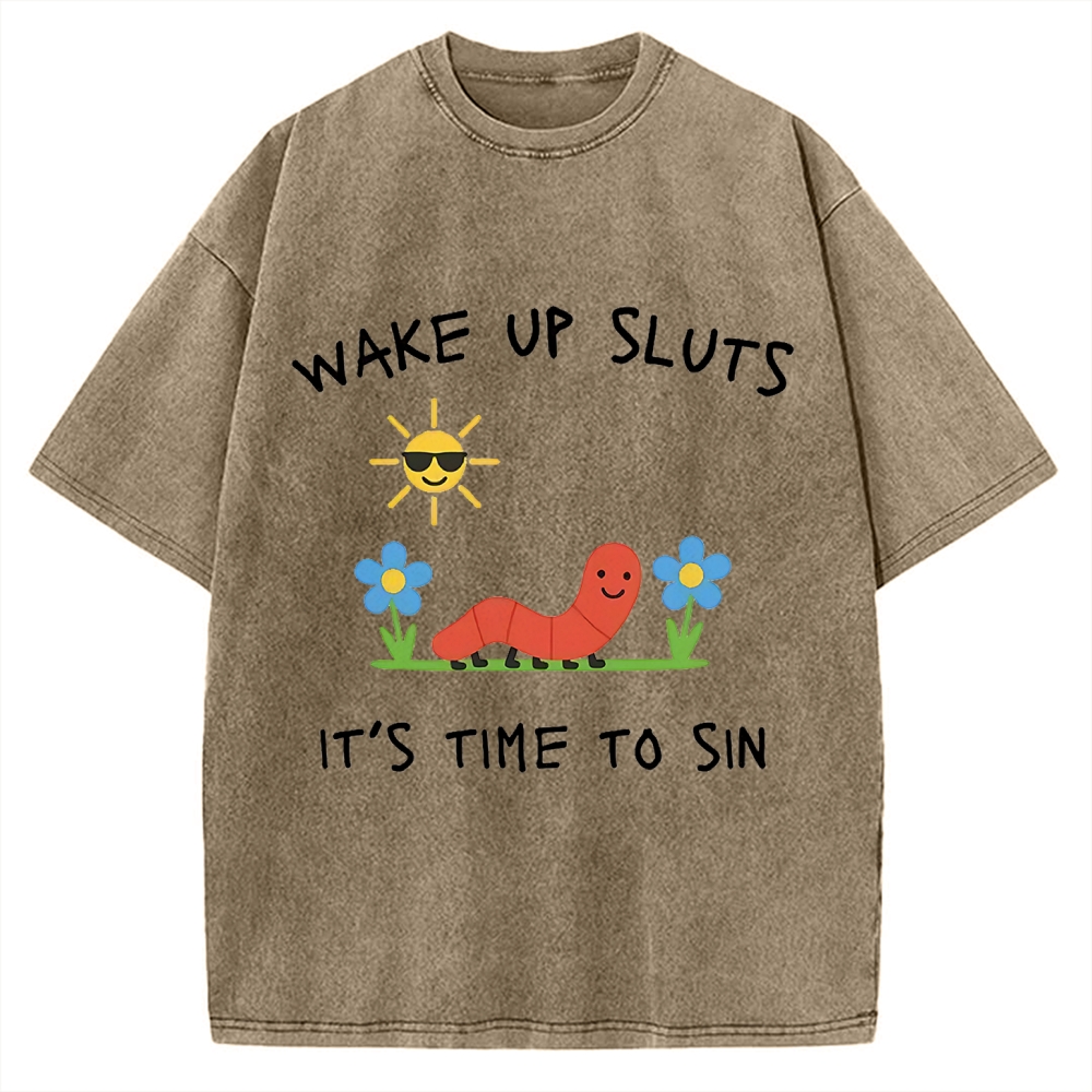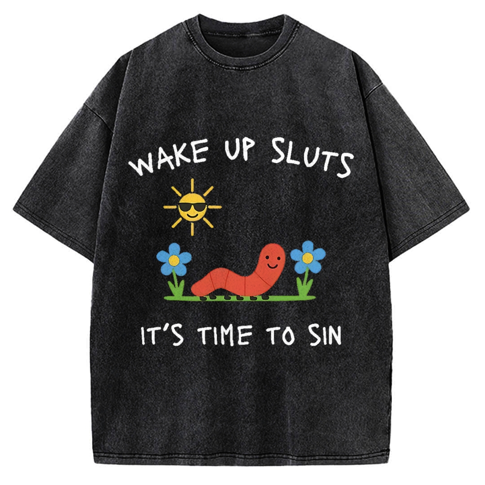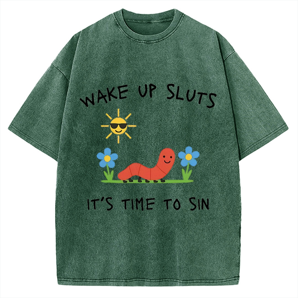 • Wake up Cute Children's Drawings Vintage Washed T-shirt